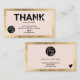 Simple logo minimaliste ordre d'affaires merci avec un cadre de remerciement vert pastel et faux or géométrique. Ajoutez vos médias sociaux. Avec une police de script de signature élégante, toutes les couleurs sont modifiables, ajoutez votre logo.