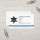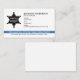 Cette conception comprend un badge de police avec une fine bande bleue. Customisez avec le nom, le poste et les coordonnées de l'agent d'application de la loi, du shérif, du capitaine, du chef ou de tout employé travaillant au service de police. L'arrière - plan blanc solide à l'arrière permet à un officier d'avoir un espace supplémentaire pour écrire une petite note si nécessaire.