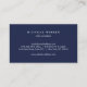 Un élégant logo art déco contenant vos initiales empilées est encadré en blanc sur ce carte de visite bleu marine foncé. La carte recto verso permet une grande place sur l'arrière pour vos coordonnées et détails. Un design élégant conçu pour les architectes d'intérieur, les stylistes, les salons, les boutiques, les écrivains ou toute profession à la recherche d'un avant-garde créatif. Art et design © 1201AM