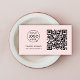 Simple entreprise blush rose QR Code et logo de l'entreprise carte de visite dans un style moderne minimaliste. Le modèle peut être facilement mis à jour avec votre code QR, logo et coordonnées.