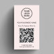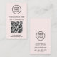 Carte de visite moderne et professionnel rose pâle avec votre code QR pour les clients ou les clients à rechercher une liste de vos produits, services, prix ou autres informations. Téléchargez votre logo et votre code QR et ajoutez votre nom d'entreprise, votre site Web, votre slogan, votre numéro de téléphone, votre adresse municipale, etc. dans une simple typographie.