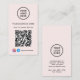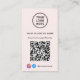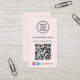 Carte de visite rose clair moderne avec votre code QR pour les clients à rechercher une liste de vos produits, services, prix ou autres informations. Téléchargez votre logo et votre code QR et ajoutez votre nom d'entreprise, votre site Web, votre slogan, votre numéro de téléphone, votre adresse municipale, etc. dans une simple typographie. Ajoutez votre identifiant instagram et facebook pour que les clients puissent vous suivre sur les médias sociaux.