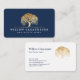 Carte De Visite Logo Rustic Modern Navy & Gold Willow Tree