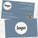 Carte De Visite Logo simple et texte QR Code Dusty Blue Grey
