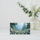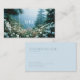 Define your brand with the lush tranquility and natural abundance of a hidden mountain preserve using this captivating business card. The design centers on a spectacular misty mountain valley where layers of deep green, rolling hills fade into an atmospheric blue-gray haze. The background is dramatically framed by dark, towering pine trees and heavy foliage, creating a sense of depth. The foreground is utterly dominated by an abundant border of vibrant white and creamy pink hydrangea-style flowers, which burst into bloom at the bottom. A crisp clean white rectangular frame sits centrally, providing a bright, elegant window for your essential information. This artwork beautifully captures the quiet majesty of a temperate forest, resulting in a unique and sophisticated brand statement that emphasizes natural vitality. This business card is ideally suited for a botanical artist specializing in naturalistic illustrations, a luxury wellness coach or resort emphasizing tranquility, or a modern floral designer specializing in large, abundant white arrangements. It would also perfectly suit a landscape architect specializing in naturalistic plantings, or a fine art print seller focused on serene, atmospheric nature scenes.