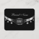 Carte De Visite Luxe Noir et Argent avec Initiales Rhinestones