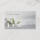 Trois roses blancs dans des trois vases blancs sur une étagère blanche montée sur un mur blanc avec des ombres ont moulé sur lui. Un carte de visite contemporain très élégant. Peut être employé pour de nombreux professions et commerces.