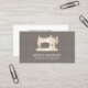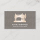 Cartes de visite élégants pour tailleurs, couturières, couturiers, stylistes, et plus avec une fausse illustration de machine à coudre en or sur un arrière - plan de lin faux gris avec deux lignes de texte personnalisé en blanc. Customisez le dos avec vos coordonnées complètes Pour une demande personnalisée contactez-nous par l'intermédiaire du magasin ou écrivez à citronelladesign@gmail.con