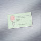 Un carte de visite magnétique avec un lapin blanc fantaisiste tenant un gros ballon rose flottant en l'air. Placez-vous sur un arrière - plan vert clair.