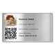 Un carte de visite élégant et glamour sur un arrière - plan faux argenté. Personnalisez et ajoutez Votre photo, nom, texte, informations de contact et votre propre URL à votre site Web ou votre compte de médias sociaux au code QR.