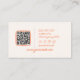Si vous cherchez un carte de visite parfait et unique, celui-ci est pour vous! ! Un modèle unique et rétro bohème chic violet tendance brillant modèle de carte de visite. Comme vous, il dispose d'un violet clair arrière - plan avec élégante police de script orange unique et dessiné à la main à damiers bleu ciel. Avec titre vintage écrit à la main ou modèle professionnel. Et à l'arrière nous avons les icônes de médias sociaux dessinées à la main avec d'autres informations comme site web et de contact et code QR personnalisable. Vous pouvez simplement et facilement le customiser en cliquant sur le bouton Personnaliser bleu, puis modifier les informations. Ce que vous attendez ! ! Allez-y et prenez-le, nous vous garantissons la qualité extraordinaire et l'expédition rapide.