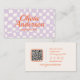 Carte De Visite Main violette rétro tirée À damiers code QR Super