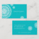 Mandala blanc stylisé sur turquoise, pour un professeur de yoga, moniteur de méditation, spa ou autres pratiques holistiques. Un mandala de style moderne. Un de nos modèles de mandala les plus populaires.