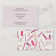 Un carte de visite élégant et moderne adapté à un Manicuriste, un Artiste de Nail, un Technicien de Nail ou quelqu'un dans l'industrie de la beauté. Cette carte de style moderne présente un arrière - plan lilas pâle et tendance avec des produits à ongles mignons et des dessins animés sur le dos. Ce carte de visite est entièrement personnalisable pour inclure vos propres informations personnelles, l'adresse et le site de votre entreprise.