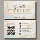 Élevez votre marque avec ce luxueux carte de visite en pierre perle opal avec des pastels irisés doux, des accents d'or chaud et une typographie de script élégante. Conçu pour les maquilleurs professionnels, il comprend un code QR fonctionnel pour la visualisation instantanée de portefeuille et la réservation de rendez-vous, créant un mélange parfait de beauté intemporelle et de commodité moderne.
