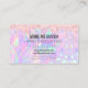 Les gouttes de parties scintillant simulées rose poudreuse de Millennial coulent du haut à la fois sur le dos et sur le devant, et une texture holographique imitation métallique Iridescendant Opal en arc-en-ciel donne le ton à ce modèle de carte de visite personnalisable, avec une bordure inférieure de produits de beauté de parties scintillant dorés rose rose rose brillante sur son visage.