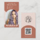 Arc moderne rétro boho terre tonique terracotta et beige photo qr code logo maquillage photo, ajoutez votre photo d'entreprise . Ajoutez vos médias sociaux. Avec une police en gras, toutes les couleurs sont modifiables, ajoutez votre logo.