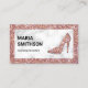 Carte de visite élégant avec talons de femmes et accents faux parties scintillant avec typographie moderne. Ajoutez votre nom et vos coordonnées pour faire une première impression durable.