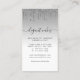Cet élégant carte de visite de boulangerie présente une illustration de gâteau mariage turquoise et argentée sur un arrière - plan à l'ombre argentée, avec une bordure supérieure de fausse parties scintillant argentée dégoulinante. Customisez-le avec votre nom d'entreprise en écriture manuscrite noire avec des swashes au début et à la fin, et vos coordonnées en police sans serif noire. (Pour conserver les swashes, ne remplacez que les lettres dans ces champs de texte, laissant les symboles en place.)