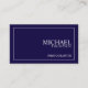 Carte de visite bleu et blanc de la marine classique professionnel avec vos informations en blanc et gris serif style police avec bordure rectangle blanc. Parfait pour un designer, photographe, consultant et de nombreuses autres professions.