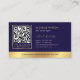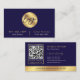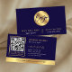 Elégant agent immobilier cartes de visite avec code QR en bleu marine et or design avec espace pour votre logo. Créez des cartes de visite de code QR professionnels pour votre entreprise à l'aide de ce faux carte de visite effet feuille d'or. Utilisez ce design carte de visite pour les courtiers immobiliers, les agents de vente, les agents de signature de prêts ou tout autre professionnel.