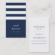 Moderne et chic design carte de visite dans un format vertical unique, il présente trois larges bandes blanches sur un arrière - plan bleu marine classique, avec votre nom et nom d'entreprise ou titre dans un mélange attrayant de minuscules serif et de caractères casquette modernes. Ajoutez vos coordonnées complètes à l'arrière dans la marine correspondante. Convient à n'importe quel métier; exemple illustré pour les boutiques.