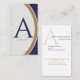 Carte De Visite Marine moderne verticale, or et Monogramme blanc