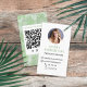 Ce design comprend un modèle simple de carte de visite avec un look moderne et simple minimaliste professionnel, des icônes de médias sociaux minimalistes élégantes, un code QR à la mode, une photo de contact numérique chic, un téléphone email cellulaire icône de site Web, un design simple noir et blanc, élégamment minimaliste design, photo ou modèle graphique, moderne contemporain propre, avec feuilles de palmier vert tropical