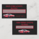 Tarjetas de negoció para mecánico automotriz multimarca con malade rojo, negro, y con carro deportivo rojo. Le cambiar el texto de la tarjeta a su propia información. Para mas maladies de tarjetas de negocios busque zazzle.com/NLRDesigns