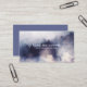 Cette conception offre un carte de visite de style serein et éthérée pour un instructeur de méditation, avec des teintes douces d'aquarelle bleu violet, et des arbres dans une forêt brumeuse avec des nuages, et des oiseaux volant. Disponible en version imprimée, en téléchargement numérique ou les deux.