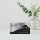cartes de visite d'entraîneurs de fitness personnel classique avec un emblème de barbell métallique argenté et un aspect arrière - plan d'apparence argentée sur un agencement simple que vous pouvez customiser en ligne. Créé pour un service d'entraînement personnel avec une touche moderne présentée sur un stock carte de visite de haute qualité sur un fini mat enduit UV.