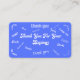 Cette carte "Merci pour votre entreprise" bleu et blanc est parfaite pour ajouter une touche professionnelle à vos petits forfaits. Que vous expédiiez par Amazon ou eBay, cette carte 2 en 1 express de la gratitude tout en permettant la personnalisation de votre nom d'entreprise, de votre site Web et de votre e-mail à l'arrière.