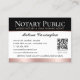 Express gratitude aux clients avec ces cartes de visite de remerciement personnalisé. Une façon parfaite de montrer votre appréciation et vos futures collaborations invitations. Ce modèle design met en valeur votre photo, ainsi qu'un stylo en plume dans un sceau - ou simplement remplacer par votre logo. Un code QR est inclus au verso, encourageant les clients à se connecter à un site d'évaluation et à laisser des commentaires. Idéal pour un notaire public, un agent de signature de prêt, un agent de livraison de fiducie de notaire certifié, l'ACDNT, un notaire mobile, un service d'appostille ou toute autre profession juridique. Couleurs imprimées : noir et blanc, avec éléments d'or rose et rose. Magasinez la collection en ligne pour des idées et des fournitures de produits plus populaires, conçus pour les notaires!