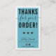 Carte De Visite MERCI POUR VOTRE COMMANDE insérer bleu turquoise