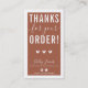 Carte De Visite MERCI POUR VOTRE COMMANDE insérer l'argile moderne