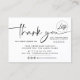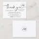 Merci à votre client pour leur achat avec ces cartes de visite de remerciement modernes. Design dispose d'arrière - plan blanc, script de typographie "merci pour votre achat", votre logo, les médias sociaux et message de réduction. Personnalisez davantage avec votre e-mail/site Web.