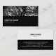 Un modèle de carte de visite/profil moderne et clair avec une image ou une illustration dans la moitié supérieure et une moitié inférieure noire. L'image de la moitié supérieure avant peut également être changée. L'envers a le même demi-pied noir avec une moitié supérieure blanche ou claire. Nom de l'entreprise, etc sur le devant avec nom et autres coordonnées disposés sur le dos. Cette carte peut être customisée de différentes façons.