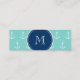 Carte De Visite Mini Ancres blanches vertes en bon état, monogramme de