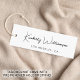 Vêtements, accessoires, bijoux, boutique, élégants et chics, étiquette blanche étiquette avec une ambiance minimaliste avec votre nom ou votre marque dans un script design signature. Ajoutez du texte supplémentaire ci-dessous et à l'arrière en typographie moderne simple.