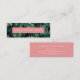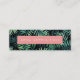 Cartes de visite élégants dans une mini taille unique pour économiser du papier ont une ambiance chic île tropicale. Personnalisez l'avant avec votre nom ou nom d'entreprise sur un arrière - plan de feuilles botaniques de jungle verdoyante, et ajoutez vos coordonnées complètes à l'arrière en lettres blanches modernes sur un arrière - plan rose corail contrasté. Un choix unique et élégant pour n'importe quelle profession; exemple illustré pour les planificateurs d'événements.