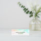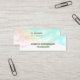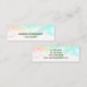 Mini cartes de visite avec une bordure abstraite le long du dessus avec des couleurs tourbillonnant vertes et bleues. Un design doux et estival. Une texture de papier aquarelle claire derrière l'image.