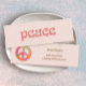 Un signe de paix vibrant illustré dans les couleurs des années 60. Arrière - plan rose pâle. Grande carte de réseautage pour les mamans occupées, les étudiants de l'université. Organisez et redimensionnez le texte selon vos besoins. Redimensionnez le signe de paix pour plus d'espace.