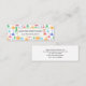Mini cartes de visite avec un motif amusant et coloré. Un scientifique de recherche vibe avec des beakers et des flacons de différentes formes et tailles dans des couleurs vives et joyeuses.