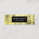 Donnez à votre entreprise un look contemporain avec ce Carte de visite de texture jaune Grunge élégant. Parfait pour les créateurs de mode, maquilleur, planificateurs d'événements, styliste, et bien plus encore. Ajoutez votre texte et les informations de votre société sur ces cartes de visite prêts à modèle. Pour toute demande de conception, contactez le concepteur. ©2010 Joshua Martin