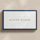 Minimalist business card with blue trim on the front in an upscale typography layout. Professional and easy to customize.