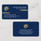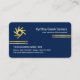 An all dark blue cover features a set of gold lines at the top and bottom levels of the card. Your prestigious name, job title and a global logo you can use are at the top; The global logo is a rotating tire rim. The business name and its contact details are at the lower left corner.