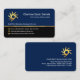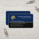 A gold line demarcates an upper blue layer against its lower black piece. Your prestigious name and job title are over at the top right corner. In the opposite direction is a gold rotating tire rim logo you can use and its business name. At the base are the contact details in their respective gold buttons.