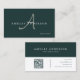 Carte De Visite Modern Elegant Dark Green Initial QR Code