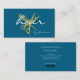 Carte De Visite Modern Hair Stylist Script Blue Gold
