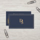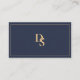 Carte De Visite Modern Minimalist Dark Blue Initials QR Code